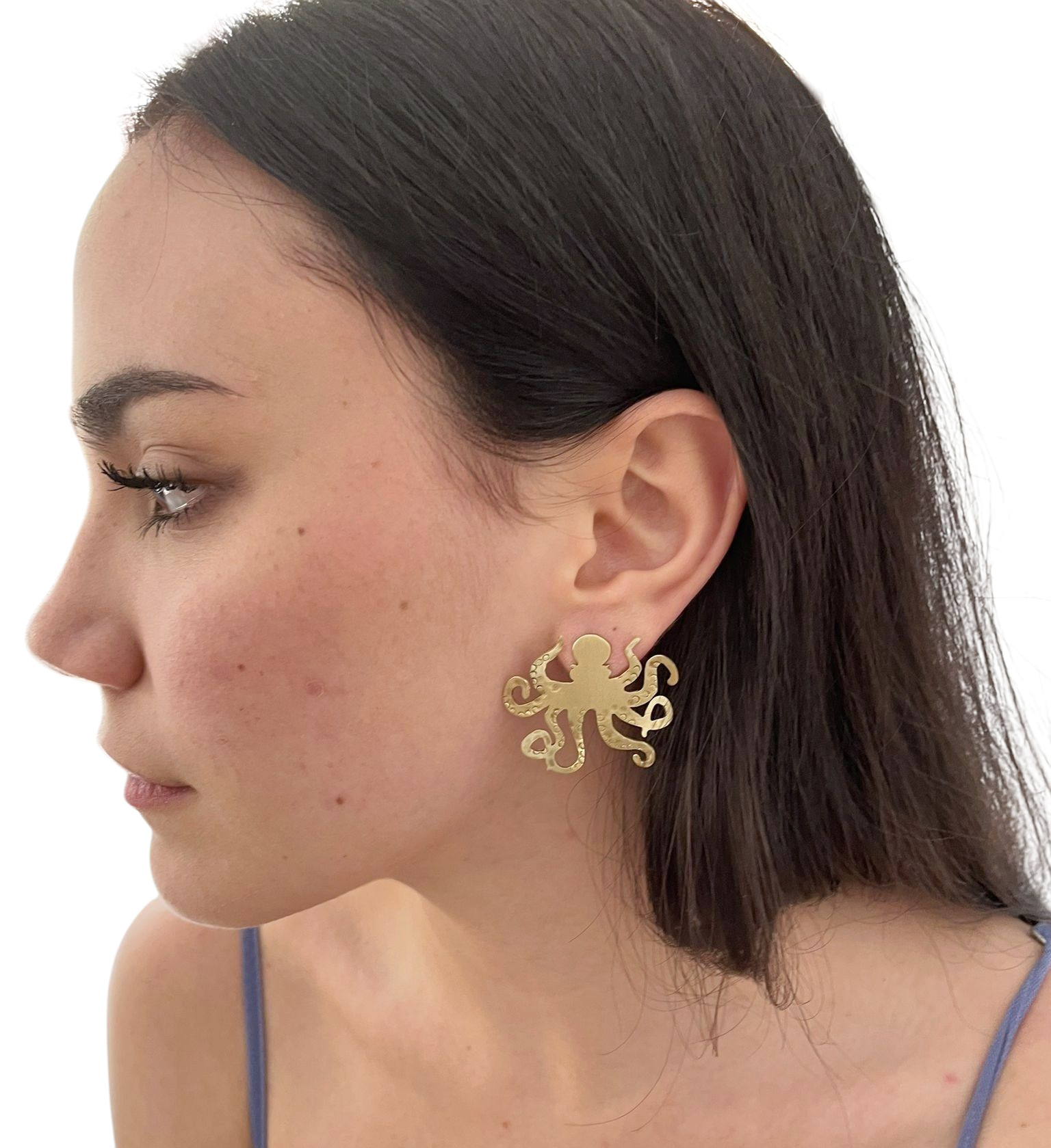 Con su forma de botón, estos pendientes se asientan discretamente en el lóbulo de la oreja, mientras su diseño estilizado con tentáculos enroscados añade un toque de originalidad y sofisticación a tu estilo. Son el accesorio perfecto para quienes buscan una joya que combine la belleza de la vida marina con un estilo sutil y elegante.