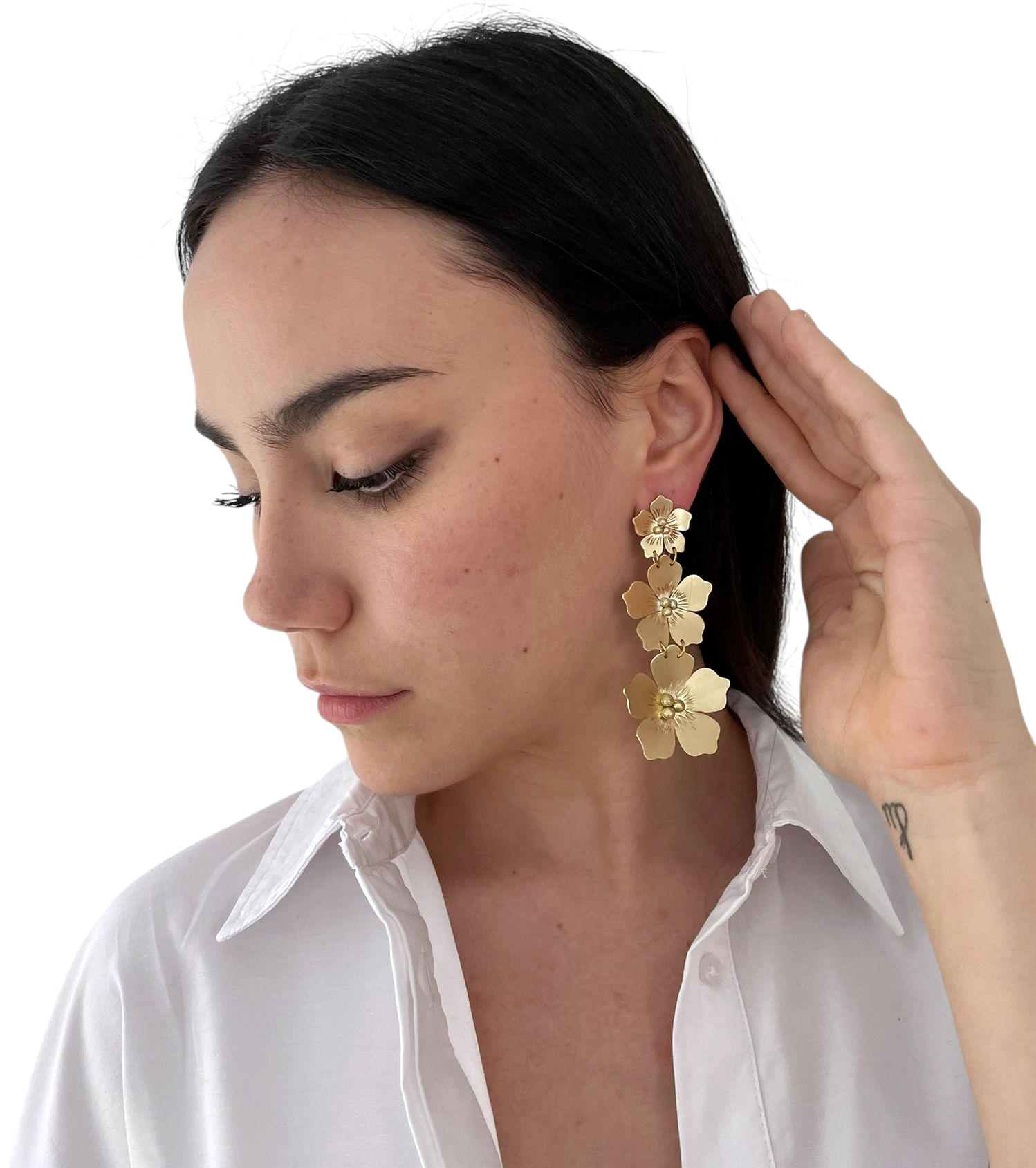 Ligeros y cómodos, los Pendientes Tres Flores son la joya ideal para quienes buscan una pieza que combine la belleza clásica con un diseño inspirado en la flora.