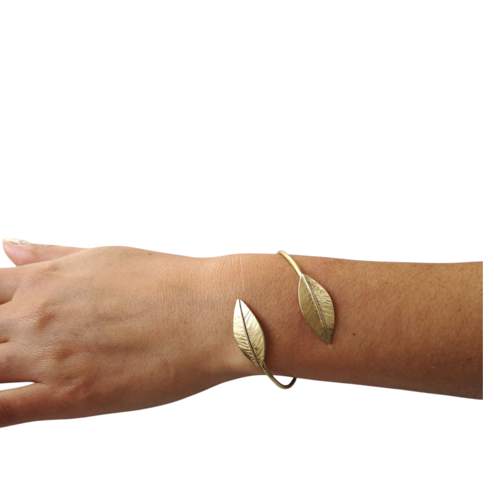 «La Pulsera Ajustable de Dos Hojas Olivo es una joya que captura la delicadeza de la naturaleza y la versatilidad moderna