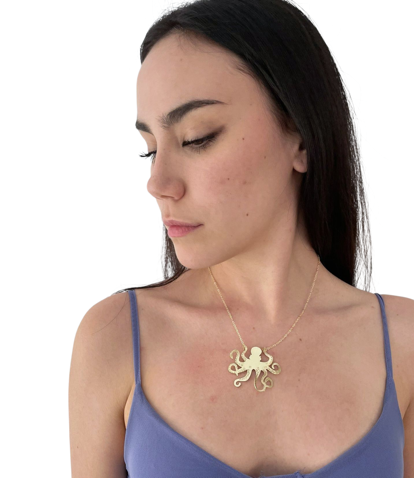 Delicado colgante artesanal con forma de pulpo, elaborado mediante técnicas tradicionales de joyería. Una pieza única que combina elegancia natural con durabilidad.