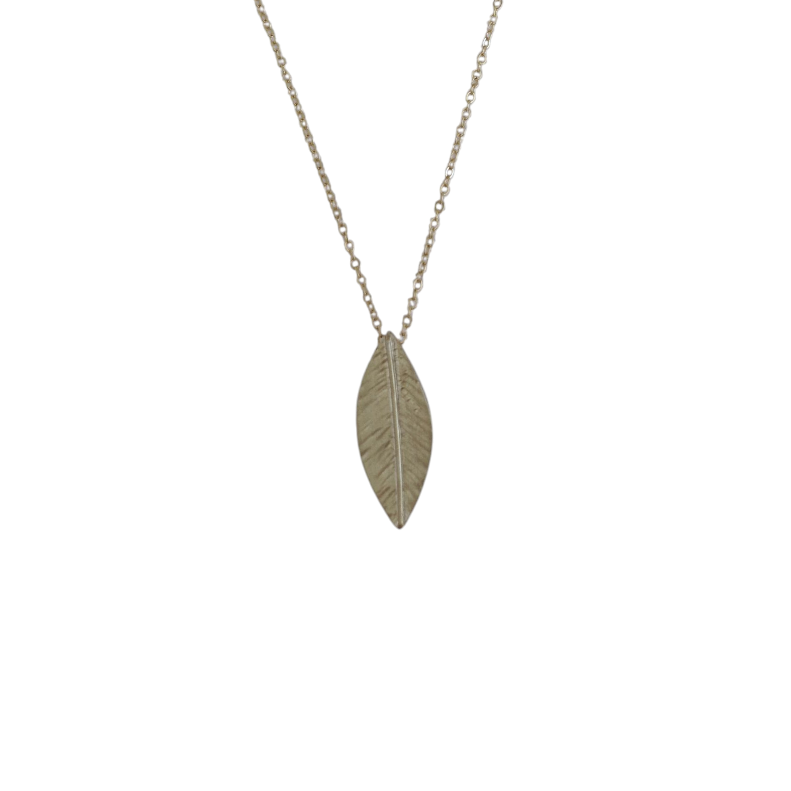 Delicado colgante artesanal con forma de hoja de oliva, elaborado mediante técnicas tradicionales de joyería. Cuenta con un protector libre de níquel que preserva el brillo y evita la oxidación. La cadena de acero inoxidable de alta calidad es ajustable en tres largos diferentes: 40 cm, 42,5 cm y 45 cm, permitiéndote personalizar el largo según tus preferencias. Una pieza única que combina elegancia natural con durabilidad.