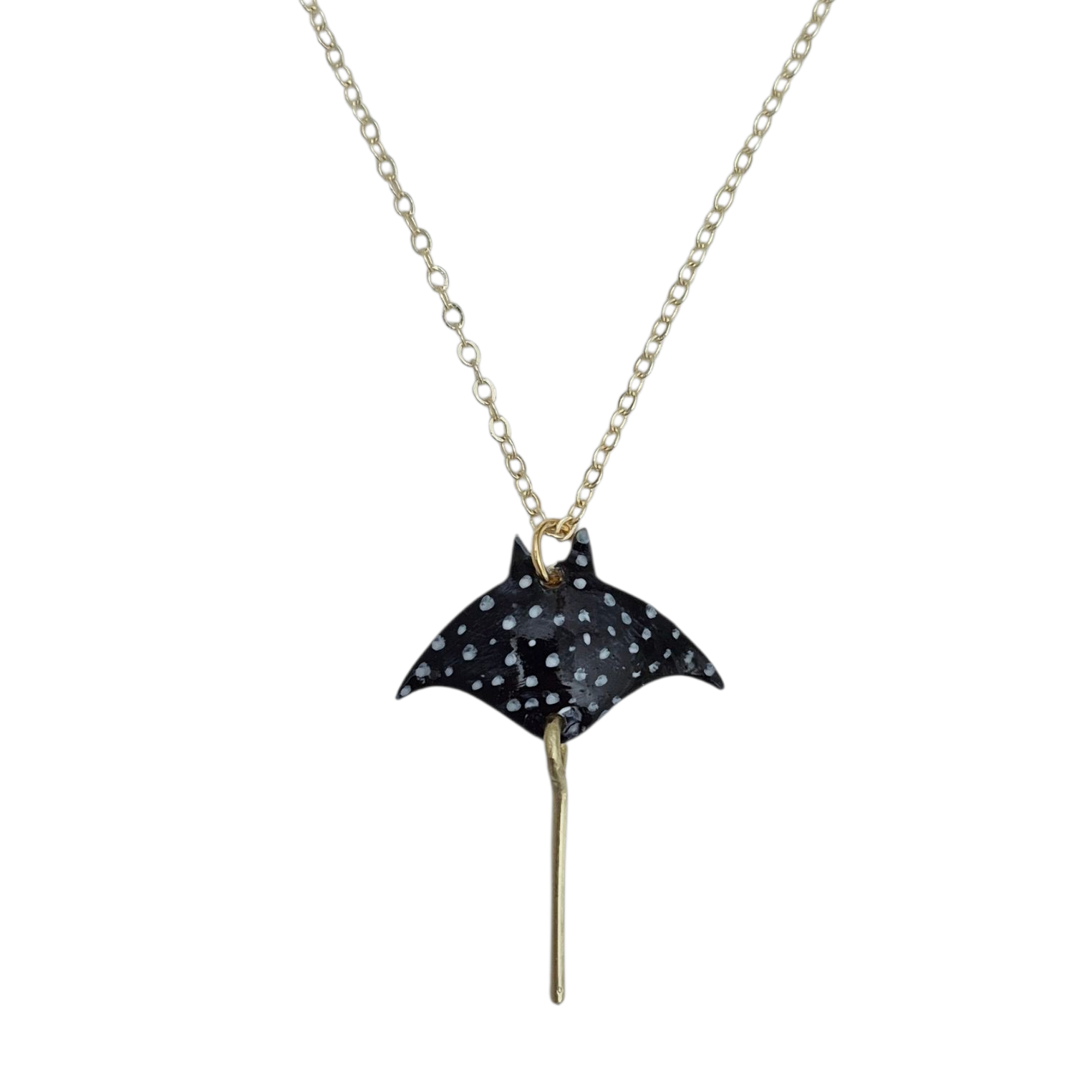 Descubre la elegancia natural con nuestro Colgante Manta Raya Diablo, una pieza artesanal única donde la tradición joyera se encuentra con el arte. Cada colgante es elaborado en bronce mediante técnicas clásicas y decorado minuciosamente a mano con acuarela, punto a punto, capturando la gracia de esta fascinante criatura marina. Protegido con un revestimiento libre de níquel que preserva tanto el metal como los delicados detalles pintados, este colgante combina durabilidad con belleza. La cadena de acero inoxidable de alta calidad está disponible en tres largos: 40 cm, 42,5 cm y 45 cm, permitiéndote elegir el ajuste perfecto para tu estilo personal.