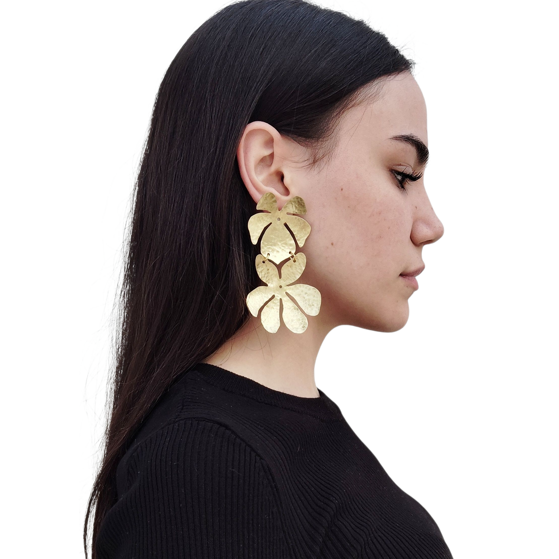 Pendientes grandes que te harán sentir como una diosa en cualquier momento del día o la noche. Creados artesanalmente con técnicas clásicas de joyería en bronce, estos pendientes destacan por su presencia y elegancia. Protegidos con un revestimiento libre de níquel que previene el oscurecimiento, cuentan con uno palitos de plata 925 y cierres de silicona para máxima comodidad. Diseñados para que brilles sin pasar desapercibida.